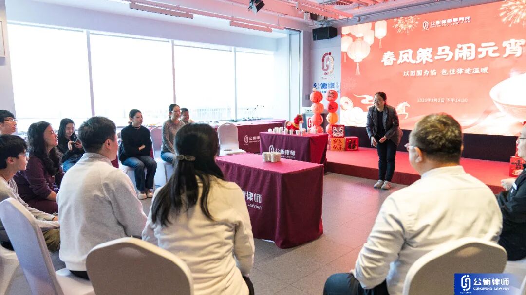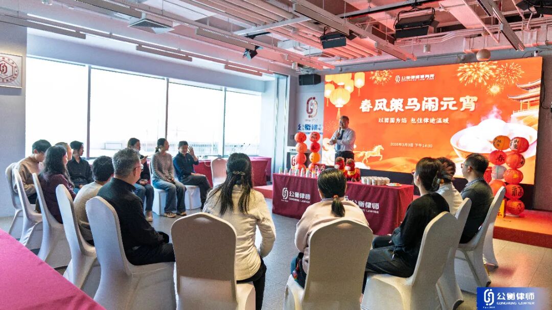 为弘扬传统文化,丰富律师同仁的精神文化生活,营造欢乐祥和的节日氛围,2026年3月3日下午,公衡律师事务所元宵喜乐会在律所多功能厅温馨上演。 部分公衡律师及行政人员欢聚一堂,在欢声笑语中共享节日的喜悦。